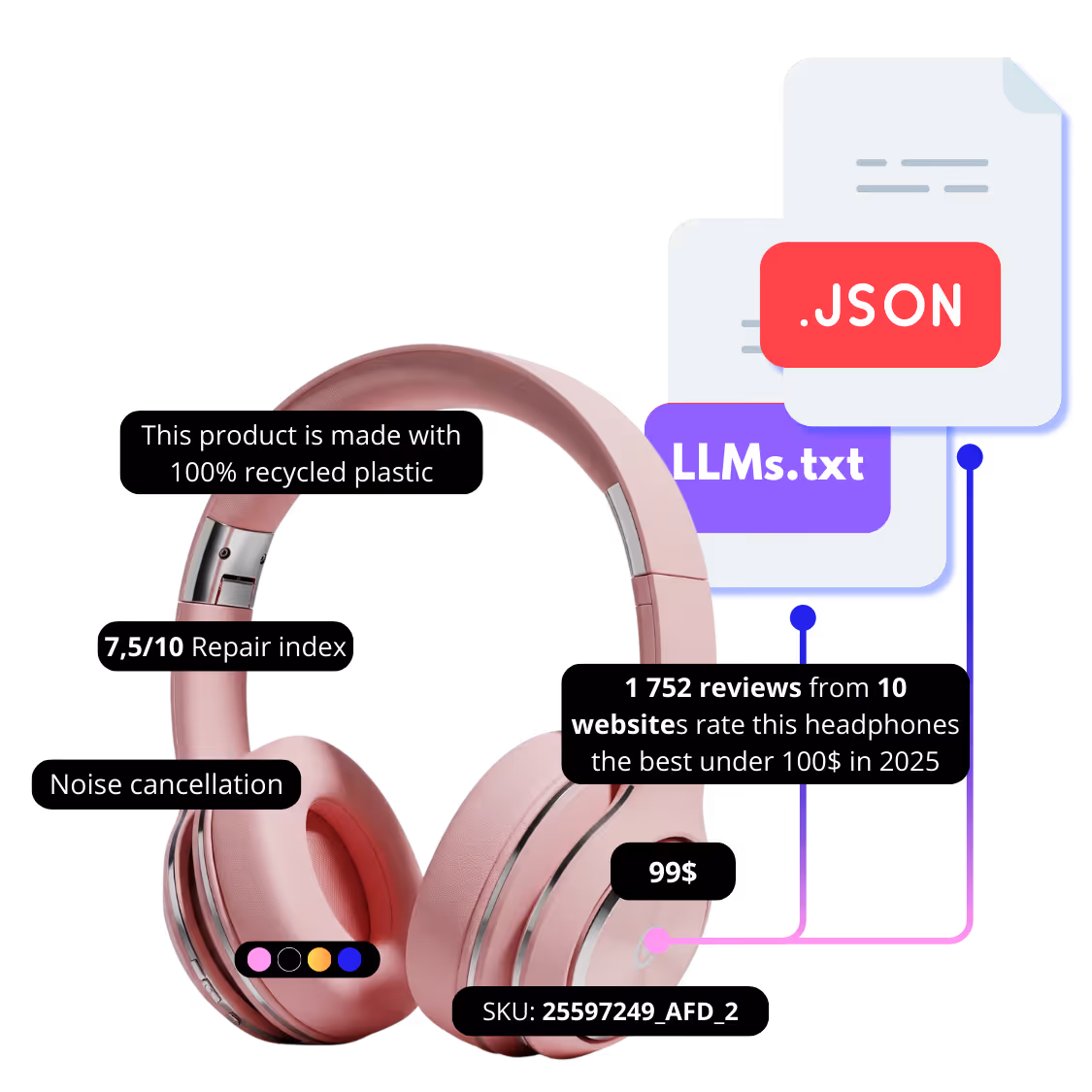 Vos données de produit deviennent un langage universel. Compréhensibles par les moteurs d’aujourd’hui et de demain : Optimisées pour le SEO et les IA conversationnelles, vos données structurées rendent vos produits visibles et recommandés partout.